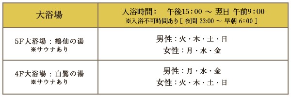 *午後15時より翌朝9時迄の大浴場の入れ替えはありません。