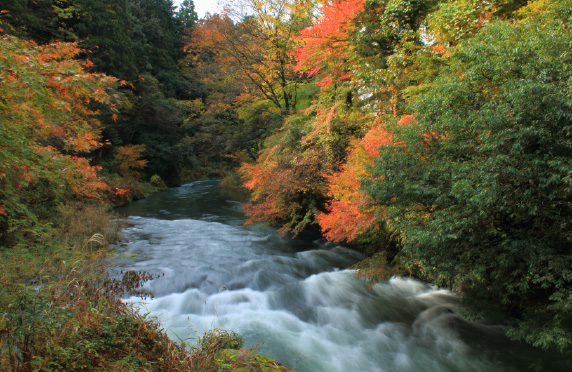 こおろぎ橋から黒谷橋にかけての1.3㎞にわたる渓谷。奇岩怪石など四季折々の自然美を楽しむことができます。渓流沿いには、片道15分程の散策を楽しめる遊歩道があります。