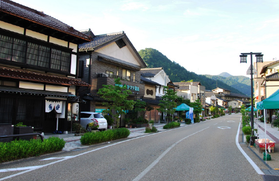 温泉街の情緒を感じながらのんびりと散策ができる通りです。山中漆器や九谷焼などのお店や、カフェやお食事処が数多く軒を連ねます。