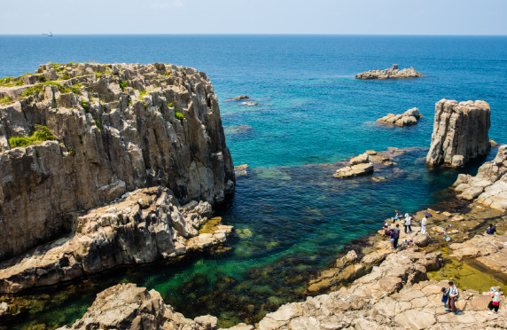 日本随一の奇勝として名高い東尋坊。間近にみる断崖は迫力満点。東尋坊の魅力は、古くから名勝として称えられてきた断崖絶壁。東尋坊先端に浮かぶ雄島とともに、日本の天然記念物に指定されています。周辺には昔ながらの土産物店・お食事処もいっぱい。