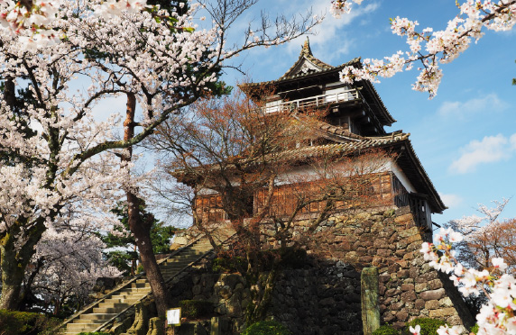 「現在天守閣では日本最古の建築様式」丸岡城は、現存天守閣では最古の建築様式を持つ平山城で、霞ケ城の別名のとおり春の満開の桜の中に浮かぶ姿は幻想的でひときわ美しいものとなっています。