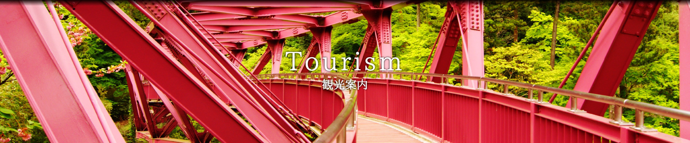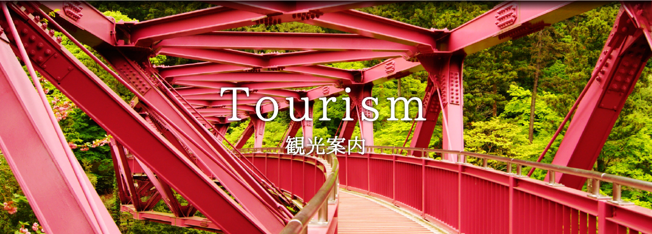 草月流家元・勅使河原宏氏が「鶴仙渓を活ける」というコンセプトのもとでデザインしたユニークなS字型の橋。橋の紅紫色の美しさは四季の風景によって様々な彩りをかもし出します。鶴仙渓遊歩道沿いにあり遠くから見ても楽しめ、橋を渡っている時の眺めも最高です。